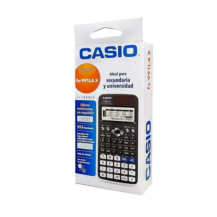 La calculadora científica Casio fx-991 LAX es ideal para estudiantes de secundaria, estudiantes universitarios y profesionales en todas las áreas. De la serie Classwiz No programable, la fx-991 LA X resuelve funciones trigonométricas, hiperbólicas, logarítmicas y conversiones entre unidades de medida.