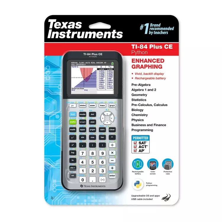 Con una pantalla de alta resolución, de color vibrante y aplicaciones precargadas, la calculadora gráfica TI-84 Plus CE proporciona las herramientas necesarias para resolver rápidamente una gran variedad de ecuaciones y problemas. Útil para una amplia gama de cursos, que incluyen preálgebra, álgebra 1 y 2, geometría, estadística, precálculo, cálculo, biología, química, física y finanzas.